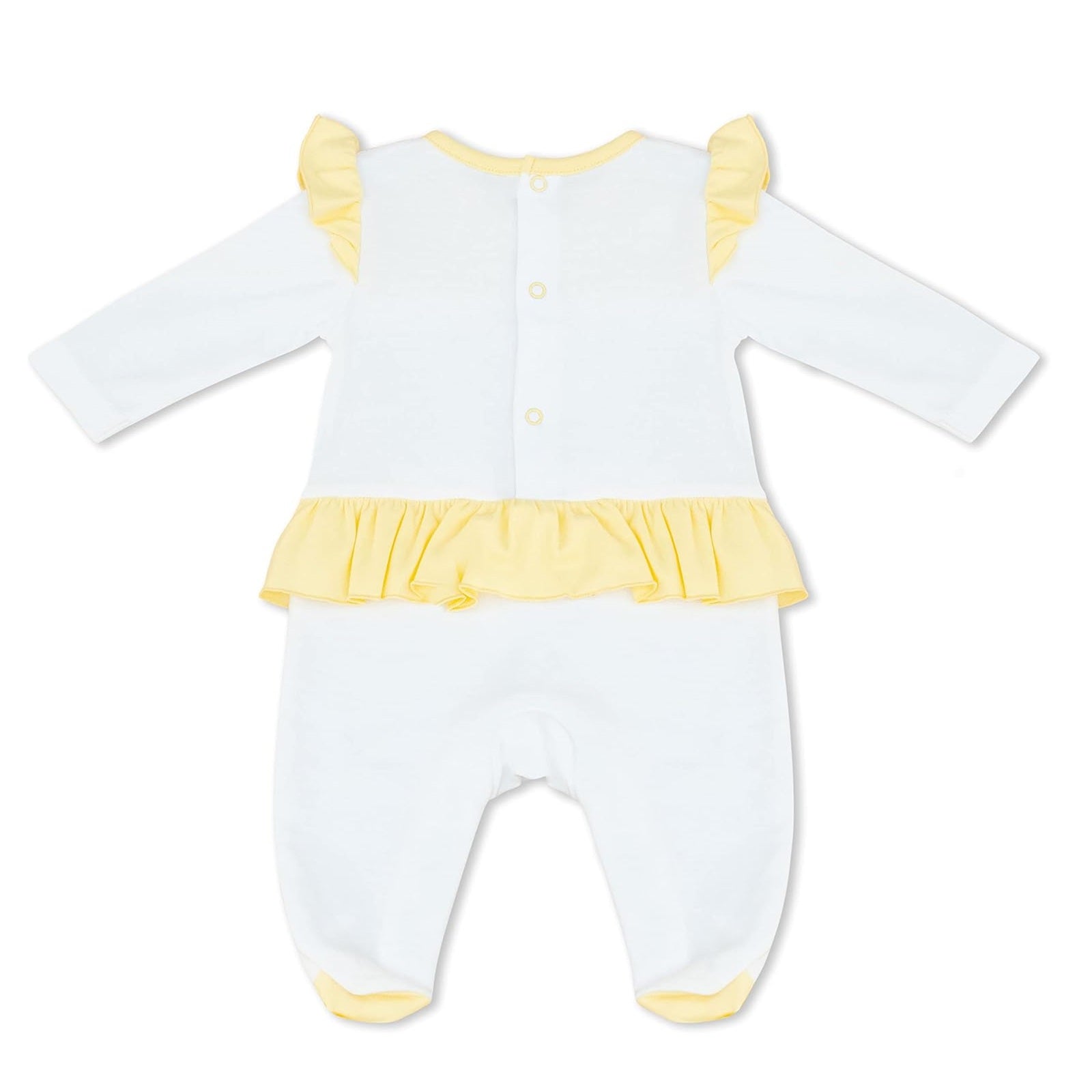 - MOON 100% Cotton Sleepsuit 3-6M Yellow & White - Lemon Hearts