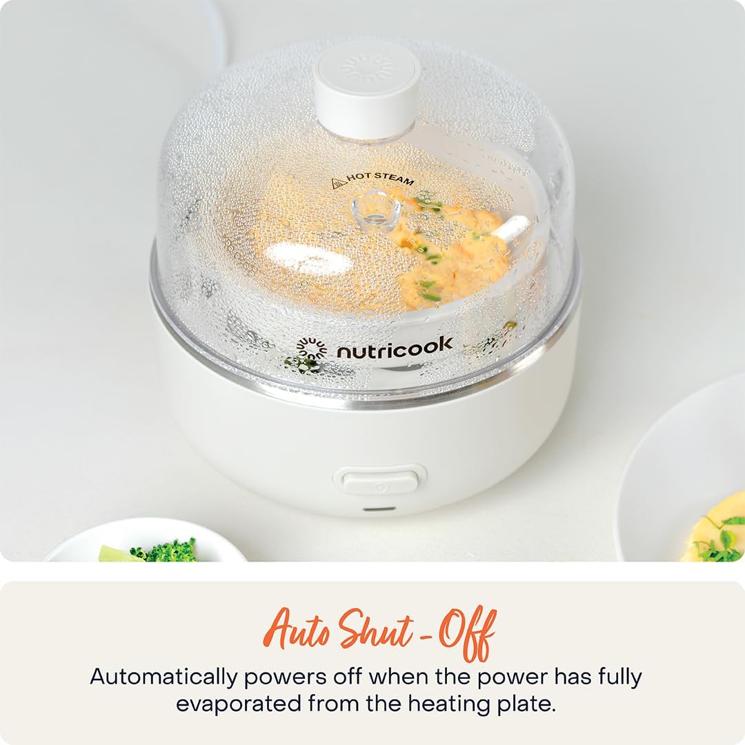 Auto Shut-Off with Safety Feature – The egg cooker features an auto shut-off function that turns off the device once the water is completely evaporated, preventing overcooking and ensuring safety. It also comes with a buzzer alert to notify you when your eggs are ready.