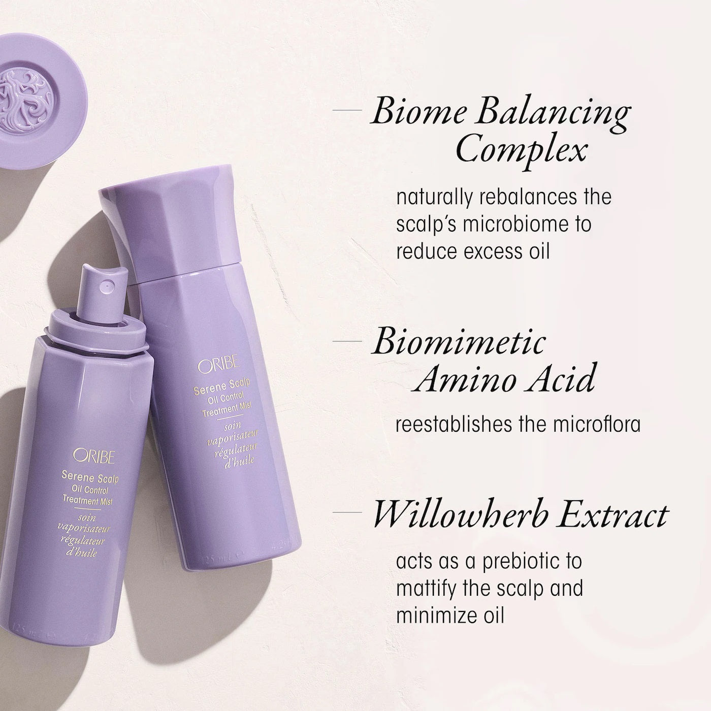 Keep your hair looking fresh between washes with this Oribe Serene Scalp Oil Control Treatment Mist. This product works to protect against environmental pollutants and reduce sebum production which contributes to a healthier scalp.