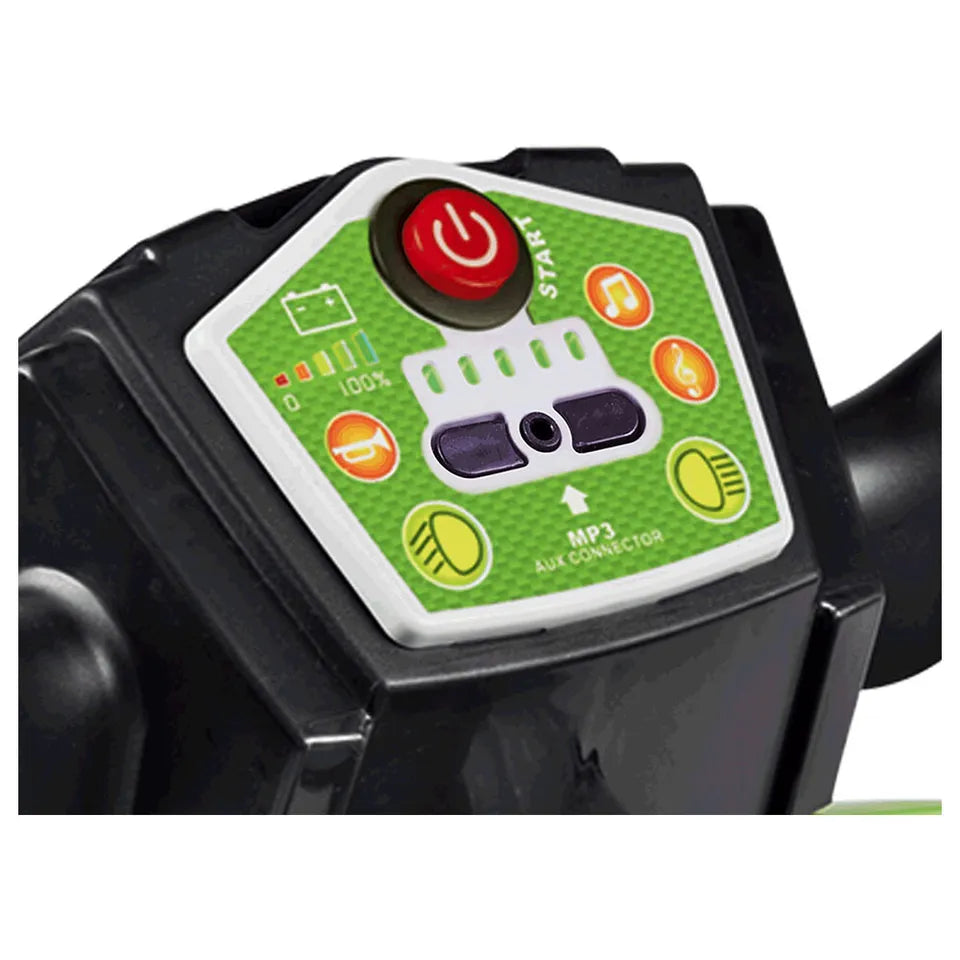 - Switch on the electric dashboard by using the START button or pressing the accelerator pedal, and you'll be amazed!! In addition to switching on the LED light on the front lamp, your child will also be able to hear the engine roar, operate the horn and listen to pre-recorded tunes. Moreover, he or she can listen to their favourite music via a port for MP3 players (not included).