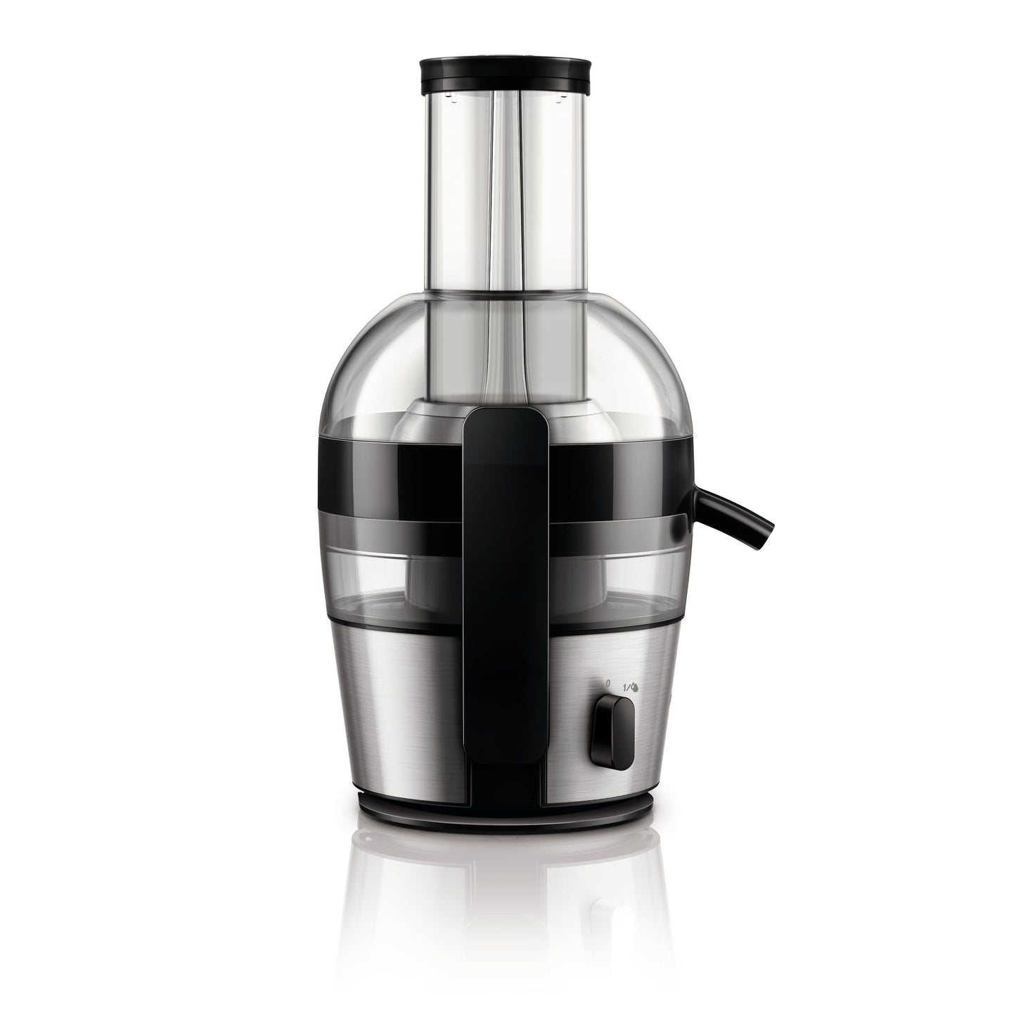 The Philips juicer is designed for easy cleaning thanks to QuickClean technology. Cleaning can now be done within 1 minute, thanks to the integrated pulp container and smooth surfaces.