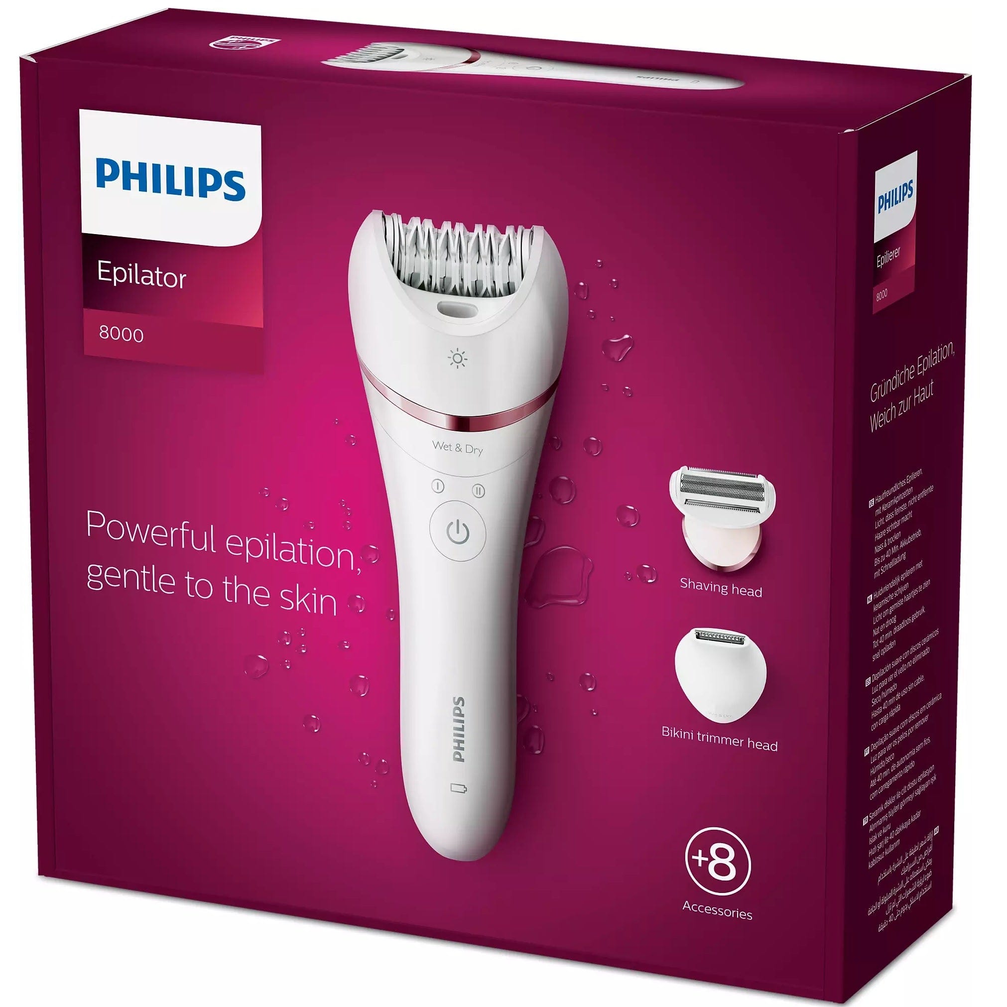 • Philips Epilator Series 8000 boasts powerful yet gentle epilation with its improved tweezers and over 70,000 hair-catching actions per minute. This means you can cover more skin and achieve flawless smoothness for up to 4 weeks. Treat your lower legs in as little as 10 minutes!