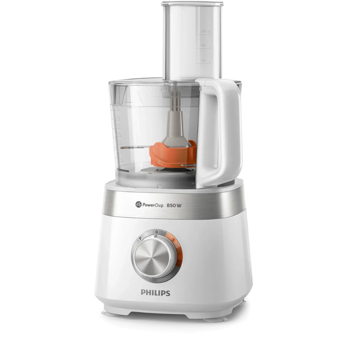 The compact Viva Food Processor takes up less counter top space, yet it is fully equipped with all of the kitchen essentials that you can easily store inside of the bowl.