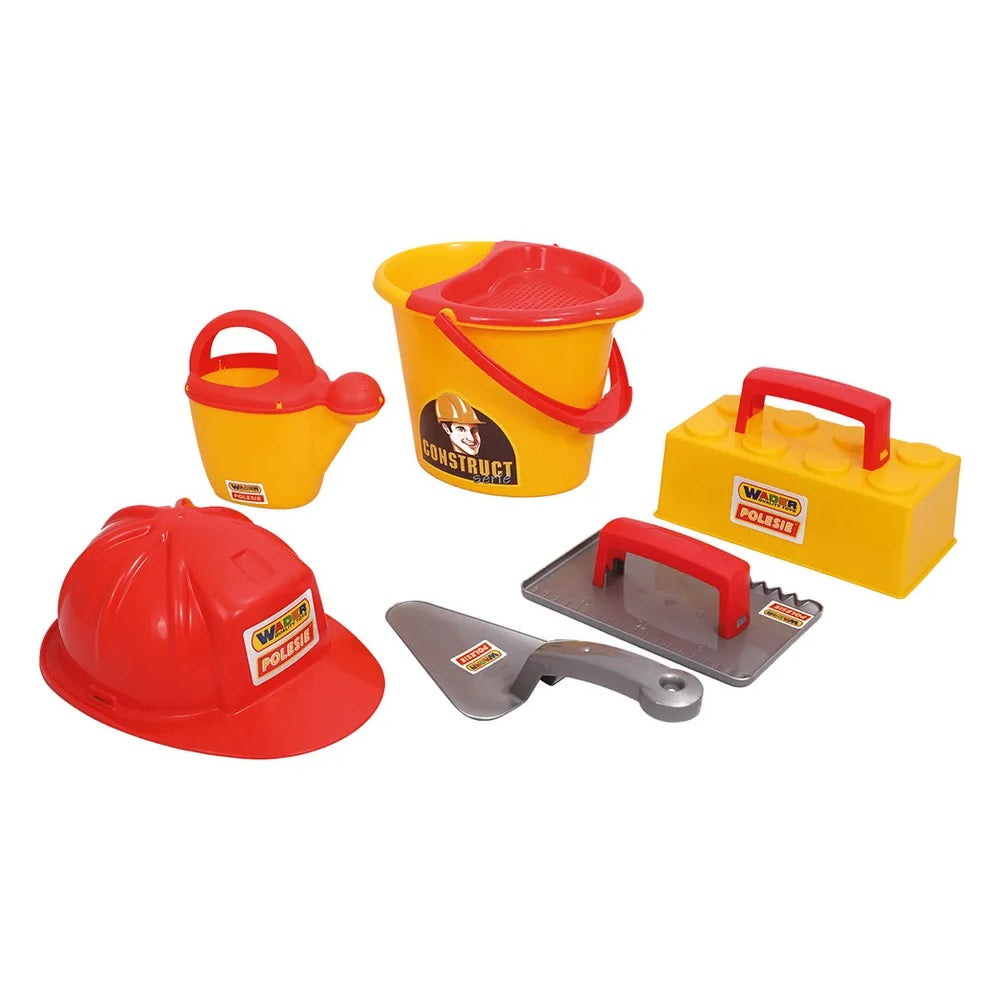 With the Bucket set Worker Construct, children can have fun in the park. They can play with sand using this toy. Made of quality plastic. , Mould - 1 pc , Triangular trowel - 1 pc , Helmet - 1 piece , Watering can - 1 pc , Bucket - 1 pc , Square trowel - 1 pc