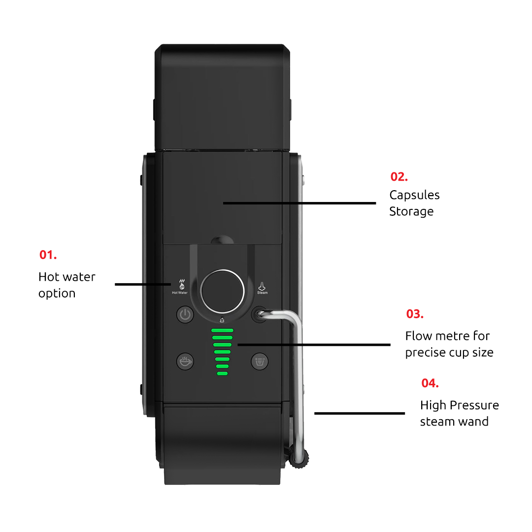 Built-In Capsule Storage: Convenient storage for easy access and tidiness.