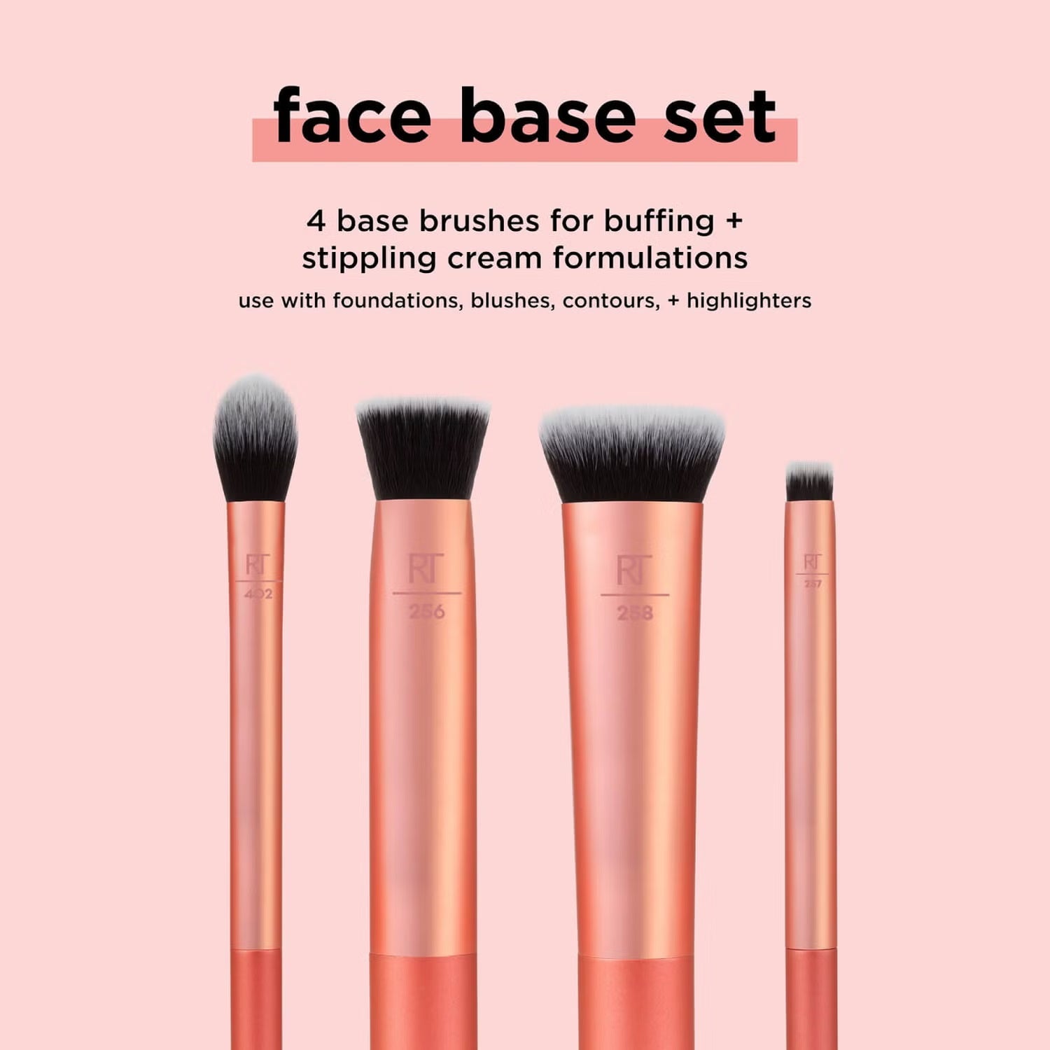 Achieve the perfect base with the Real Techniques Face Base Set, featuring all the makeup brushes you need for seamless blending. The set includes four curated multi-use brushes that can be used with creams, powders, and liquids. Each brush is created with certified cruelty-free, vegan UltraPlush synthetic bristles.