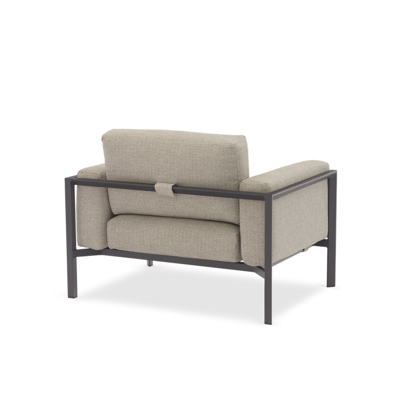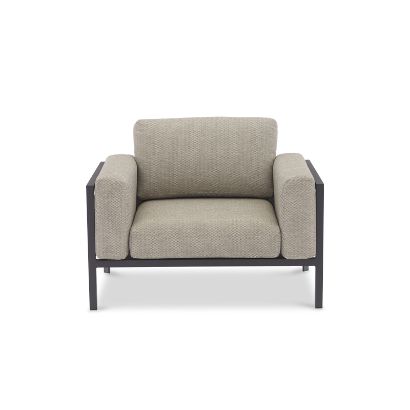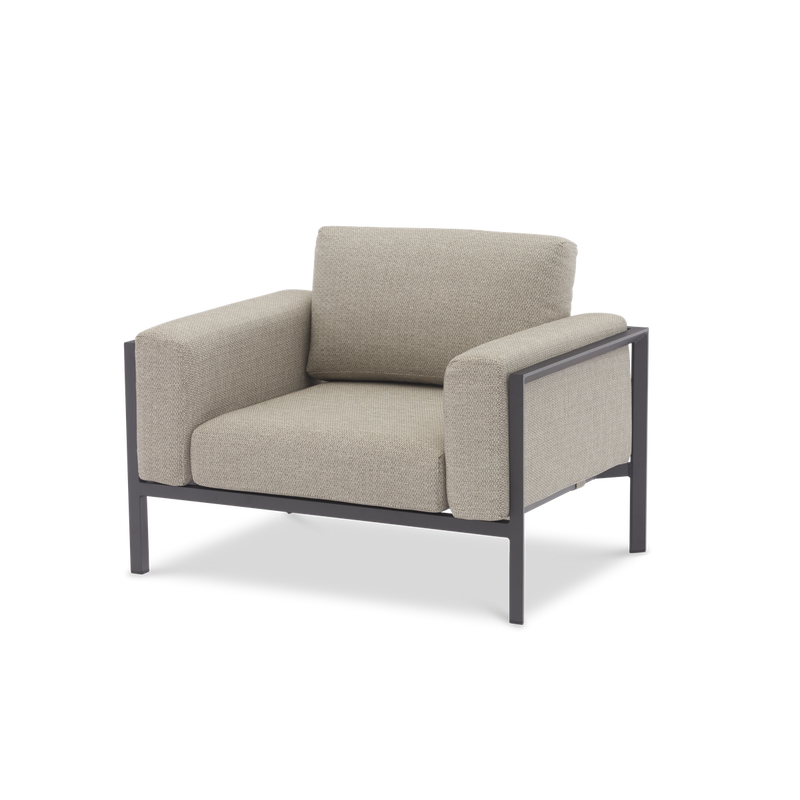 The Reef design is characterized by a light and elegant aluminum frame that embraces high comfort seating cushions.