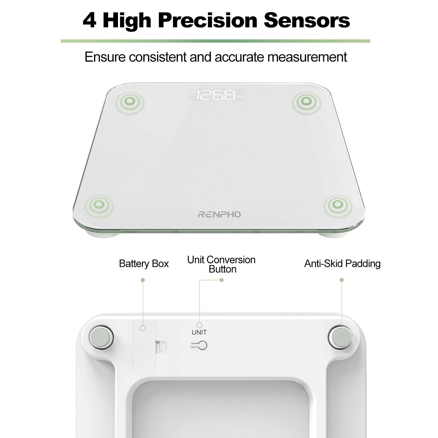 • Always Accurate: Equipped with 4 high-precision sensors, the digital bathroom scale instantly delivers precise weight readings with a capacity of 400lb (180kg) in 0.1lb (0.05kg) increments, enabling you to accurately track even small changes in your weight.