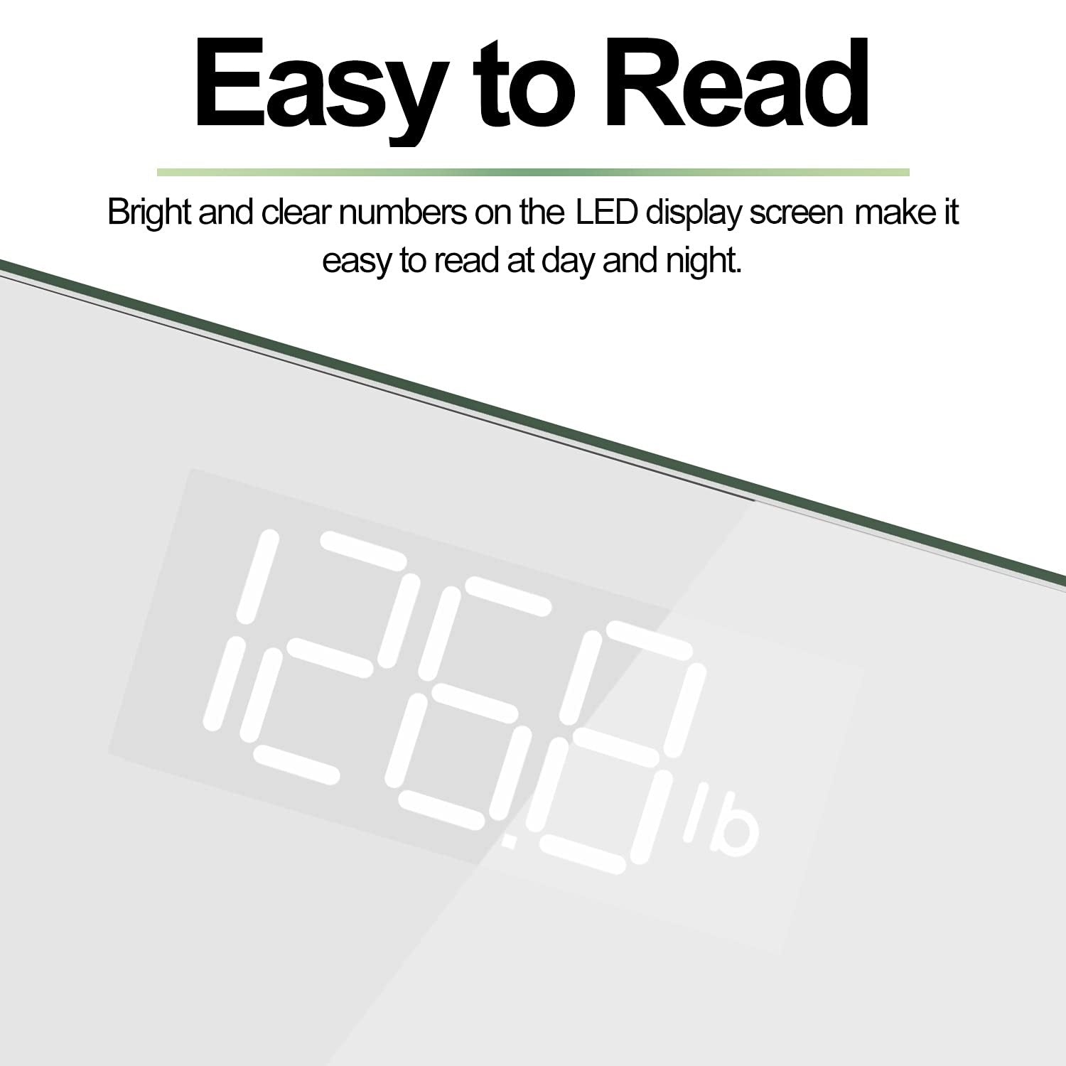 • Easy-to-Read LED Display: Clearly shows weight measurements in bold and well-defined numbers, allowing you to quickly and easily check your weight at a glance, even in low-light environments.