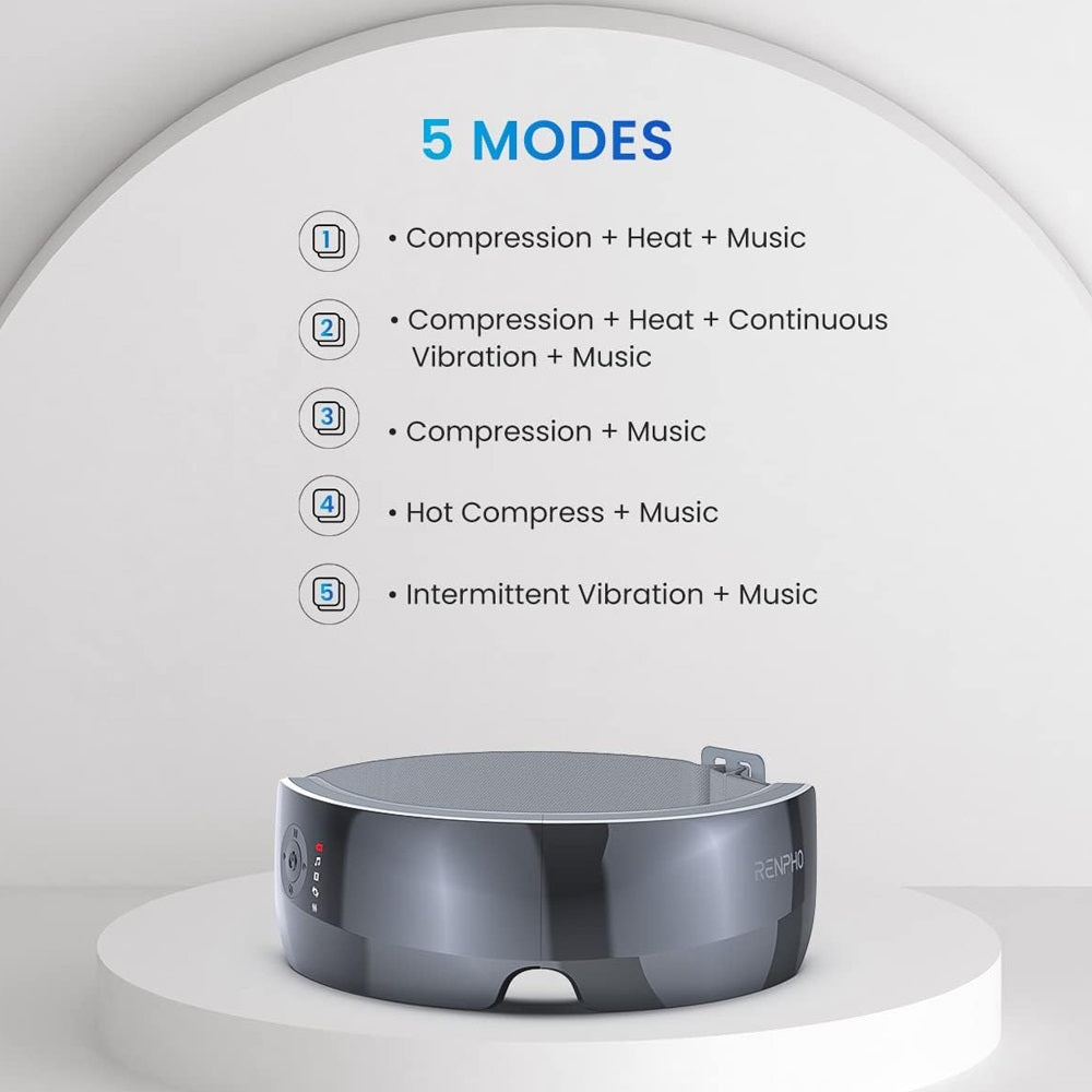 5 Customizable Massage Modes: Eyes are a window to the heart. The heat, compression, vibration and music functions are cleverly combined in different modes to personalize your eye massage. Good to combat dry eyes, eye puffiness and migraine relief at the end of a long day. Enjoy greater peace of mind with a built-in timer that shuts off the massager after 10 minutes of continuous use