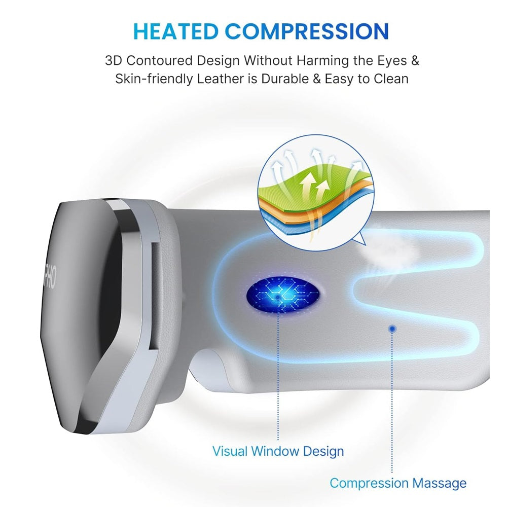 Improved Vision Window: The eye massager is meticulously designed with vision eye holes that allow you to look around keep safety and balance, answer calls, or even enjoy a snack or drink during your soothing massage. Since the eye massager has vision windows, there is only weak heat and compression in the middle of the eye, the heat and compression of this true view eye mask is deliberately extended to the temples. Therefore, it is also a temple massager
