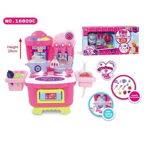My Kitchen Set with water contains a cookware set, other kitchen accessories, etc. High quality, specially designed for children involves your child in playful activities. The best cooking companion for all day long playing. The kitchen is just like the real one.