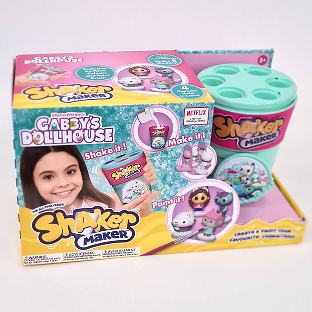 Bring the magic of Gabby's Dollhouse to life with the Shaker Maker! This interactive playset allows kids to create their own colorful, customizable treats inspired by their favorite characters. With an easy-to-use shaker mechanism, children can mix and match ingredients to make delicious-looking goodies, all while engaging in imaginative play.