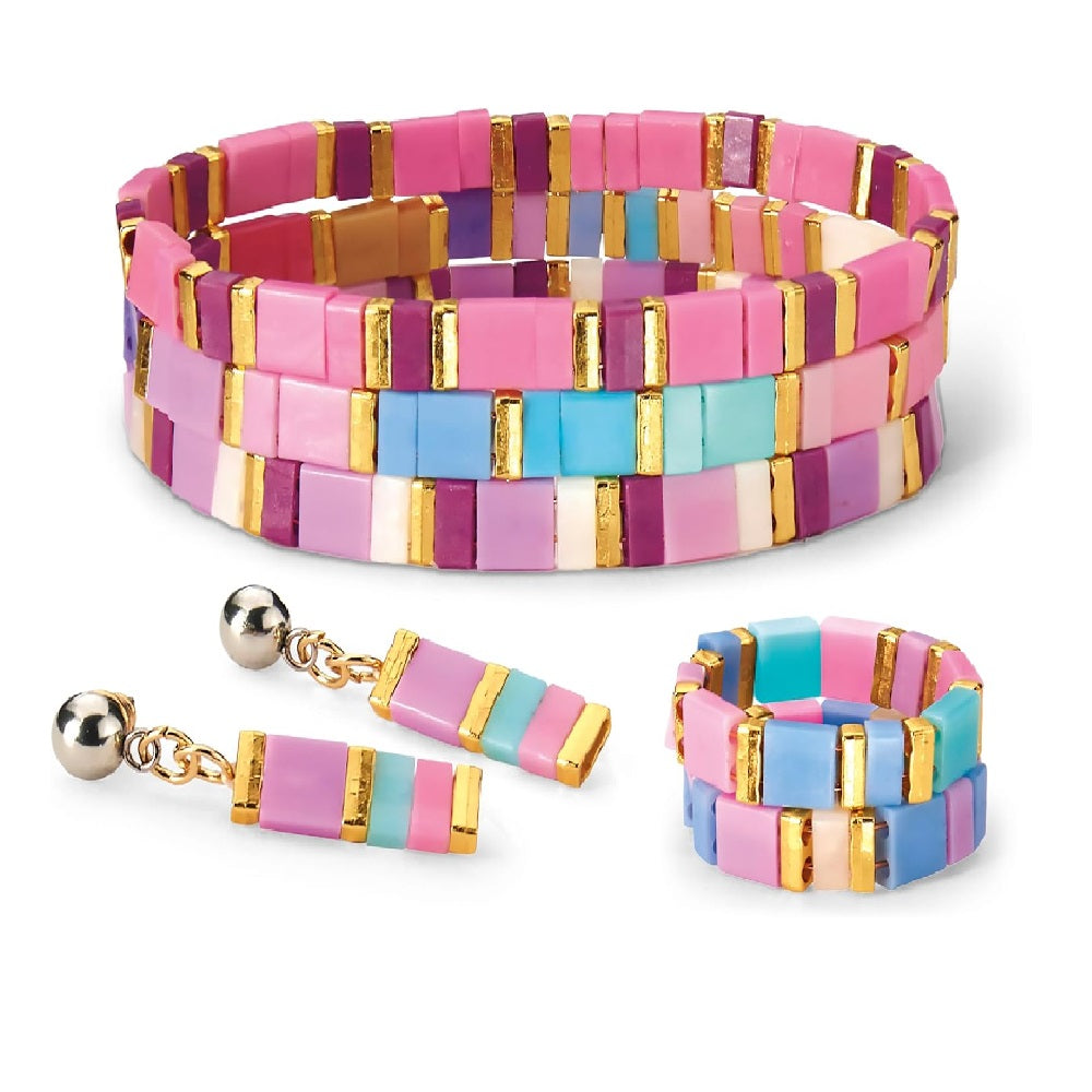 Product Description: FASHION BEAD JEWELLERY STUDIO - Make your own fabulous fashion bead Jewellery! The totally on trend set that allows you to create your very own trendy tila beaded bracelets rings and more! SIMPLE ONE 1 STEP BEADING - The Special threader makes beading easy as 1-2-3! Choose your beads, thread the beader, slide & create! Simple to Design & Create! SO MANY DESIGNS TO CREATE - Design and create bracelets, rings and earrings. Create a whole host of spectacular jewellery ! Have so much fun creating different colour combinations for you and your friends! There are so many styles to create! Fun to make & wear or make & share! ORGANIZE AND STORE - The Fashion Bead Studio also opens up and can be used as a storage caddy for all of your beads. With separate compartments to keep colours and styles separate. The perfect way to keep everything tidy! THE PERFECT PRESENT - The Fashion Bead Jewellery Studio is the perfect present for children aged 8 and over who love making jewellery creations. They will have hours of fun creating different colour and style combinations for themselves and friends alike! Product Specifications: This toy is not suitable for ages under 3 years: It contains one or more of the following items marbles; small ball; or small parts. Recommended Age: Suitable for 3 years & Up