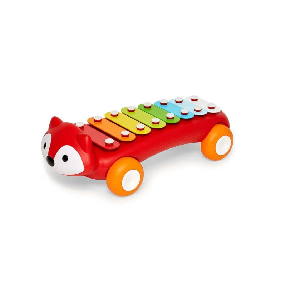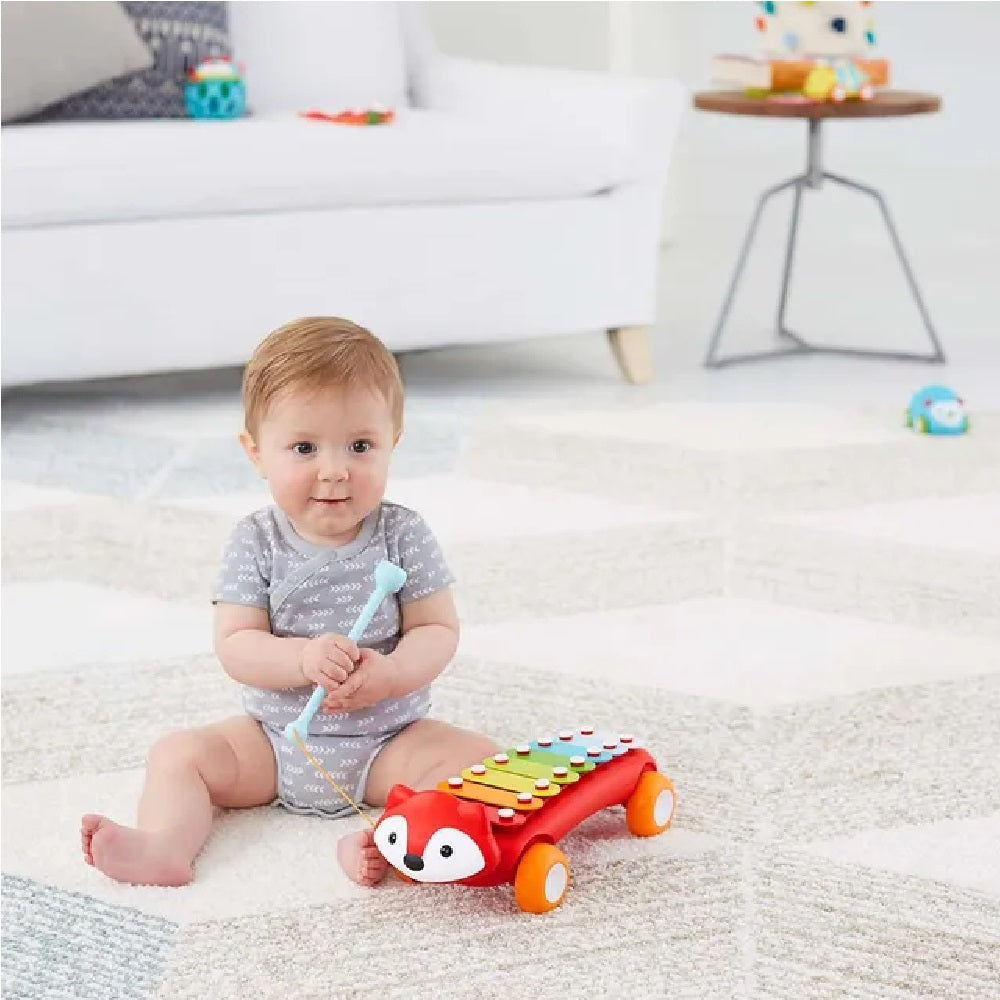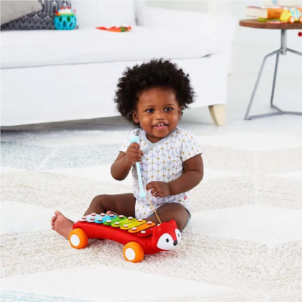 This adorable fox inspires early musical creativity with eight colorful keys. Our toy xylophone allows musical abilities to grow as babies tap each note and play their first tune. The mallet is attached so they can take their tunes wherever they go—and it won’t get lost!