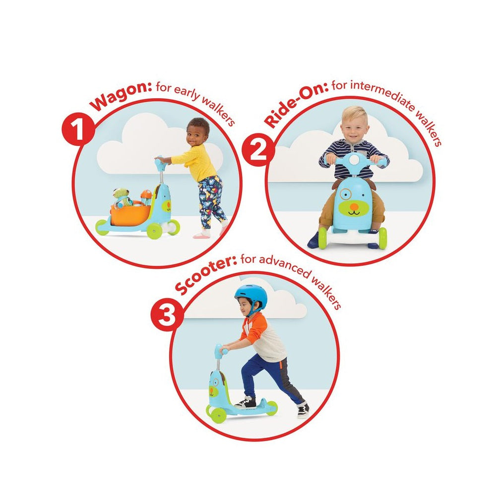 - Stage 3: As toddlers grow, easily converts from a ride-on to a scooter
