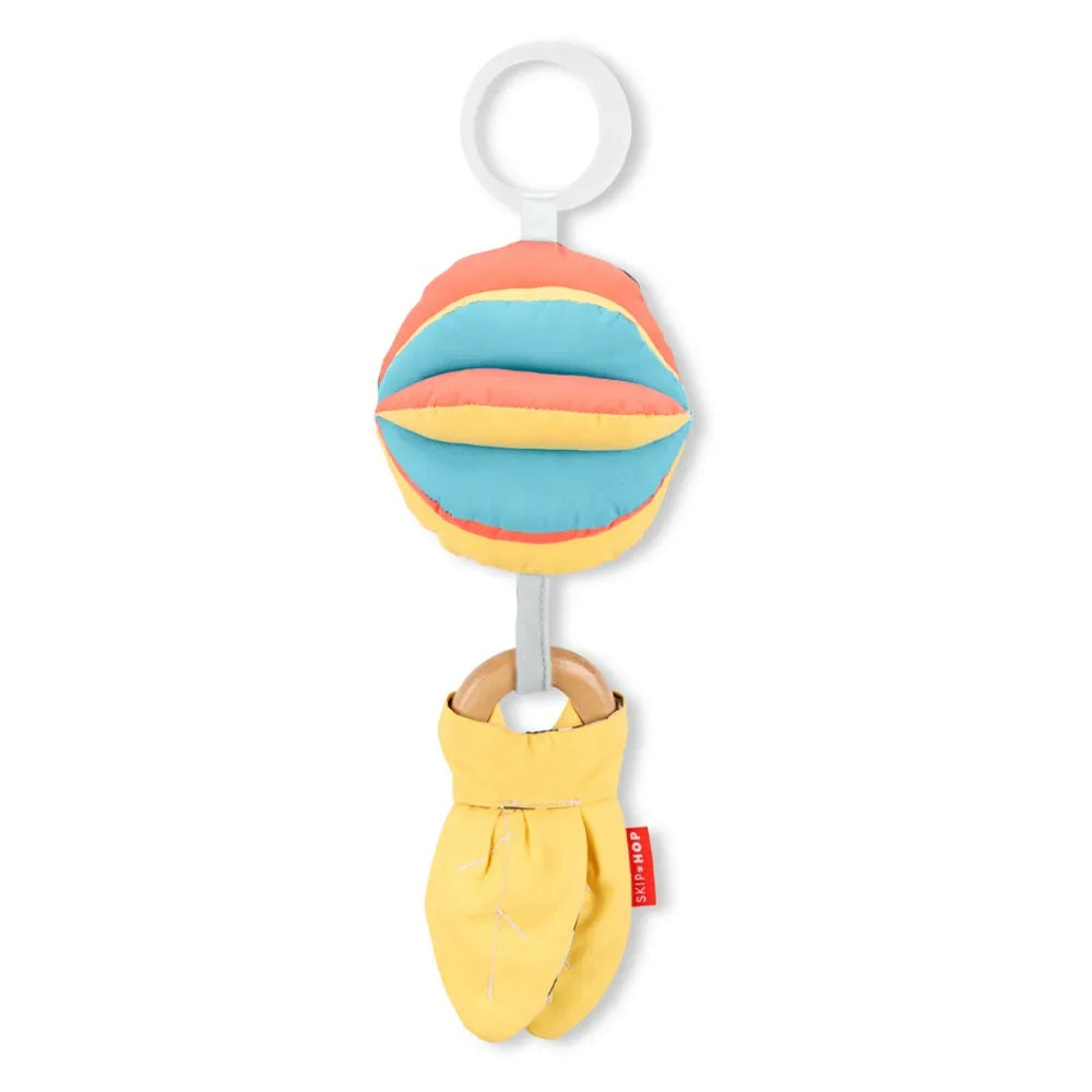 Skiphop Discoverosity 3-in-1 Baby Toy encourages visual stimulation, motor skills and more - at home and on the go. The two-piece toy lets you use each item separately or connect them together for three different ways to play. The soft rattle ball features a high contrast pattern on one side & bright colours on the other, while the sustainably- source wooden ring with solid & black & white patterned fabric is perfect for grasping and teething.