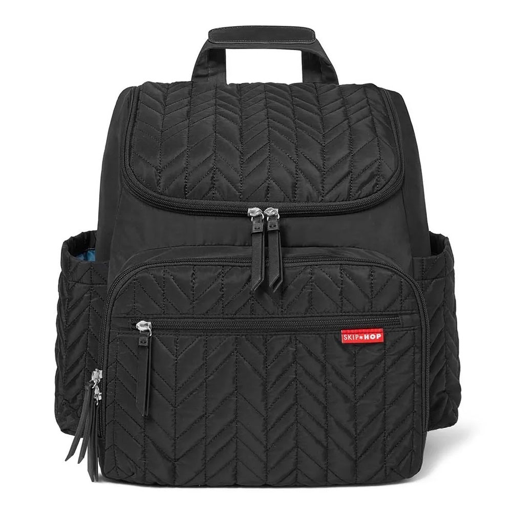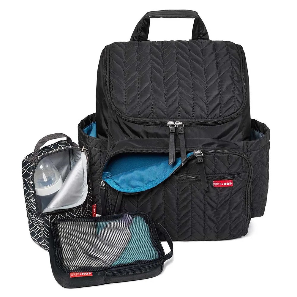 Introducing the newest member of our Forma collection-the Forma Backpack. With the same lightweight fabric and stylish quilted detailing, this backpack offers the convenience of hands-free parenting on the go. The spacious interior has room to tote everything from snacks to spare outfits and the extra wide opening makes it easy to find essentials in a pinch. The front compartment includes 2 multi-purpose packing cubes and allows for extra storage. Everything stays in reach with elasticized interior pockets and insulated side bottle pockets. The changing pad pocket performs double-duty, acting as a laptop holder when traveling. With the Forma backpack, function meets fashion to take you from birth to toddlerhood and beyond in style.