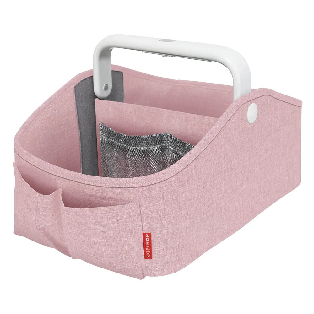 Shed some light on middle-of-the-night diaper changes with our modern diaper caddy! The handle shines softly with a touch sensitive light and a 10-minute auto-off feature. Organize diapers, wipes and more with a modular divider and four pockets.