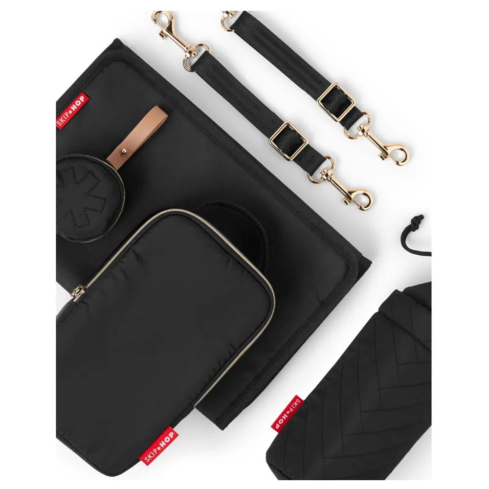 Skiphop has given the standard diaper bag an upgrade by packing it with a complete range of coordinating accessories. Featuring lightweight, wipe-clean fabric and luxe details, this bag will make you feel effortlessly pulled-together and fully equipped for any moment that comes your way.