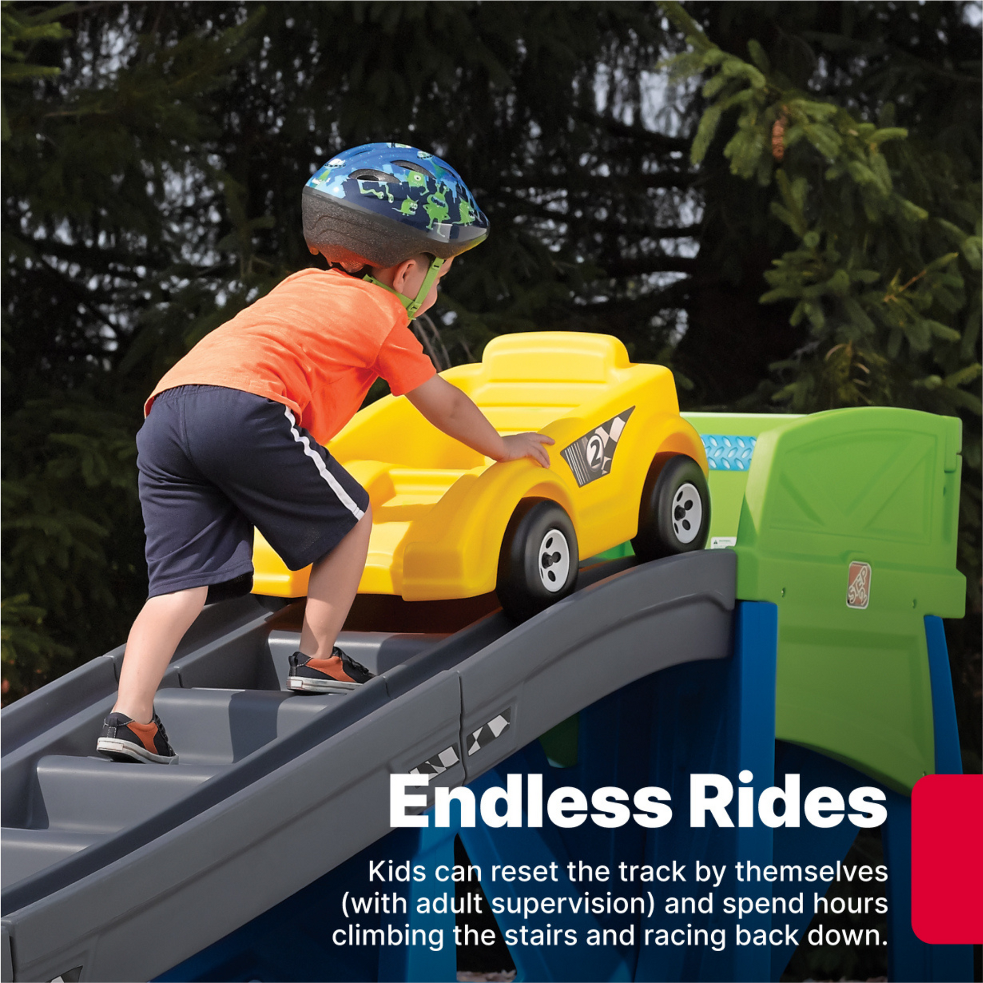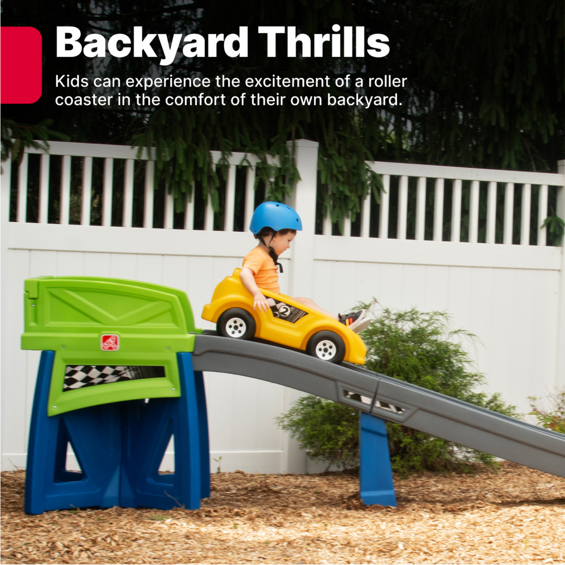 Turn your backyard into a mini amusement park with this Step2 Toy Roller Coaster. This huge colorful kid’s roller coaster toy is designed for preschoolers but still a hit with older children. Climbing the stairs to reset the ride helps to foster balance and develop gross motor skills while giving kids plenty of exercise during outdoor play. Durable enough to be left outside year round this toy roller coaster will be an instant backyard hit. Made in USA of US and imported parts.