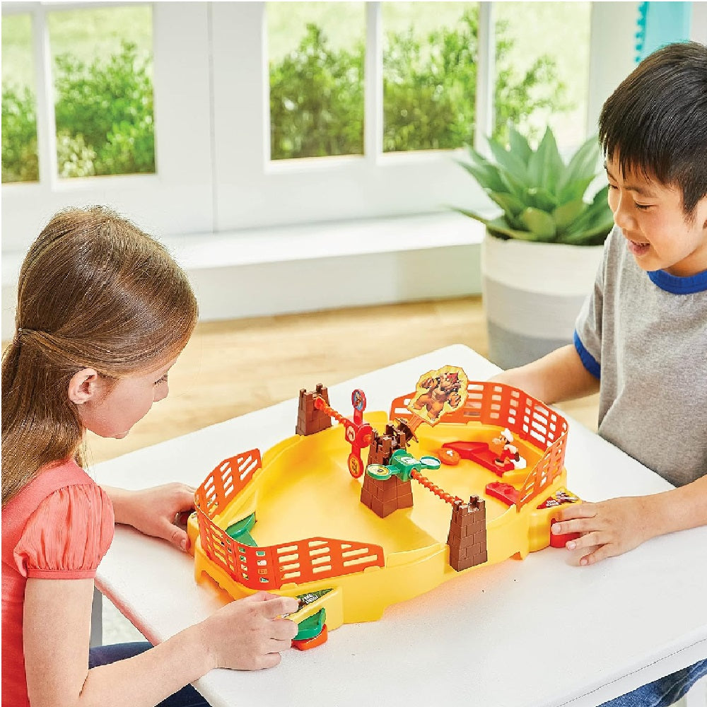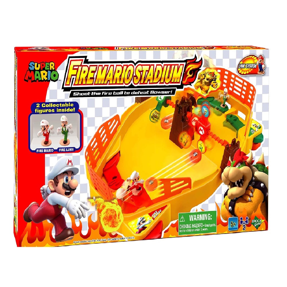 High quality games from Epoch and iconic Super Mario Action Figures come together in the newest line of tabletop action games from Epoch Games. Use both paddles to shoot fireballs and defeat Bowser! Fire at your character’s targets to advance them closer to Bowser and win! Play defense by shooting at your opponents target to send them back to start. Includes game base with Bowser’s Tower, two double sided targets and Super Mario and Luigi collectible action figures. Promotes independent, screen-free playtime. Single or multiplayer game for up to 2 players. Suitable for children ages 5 and up.