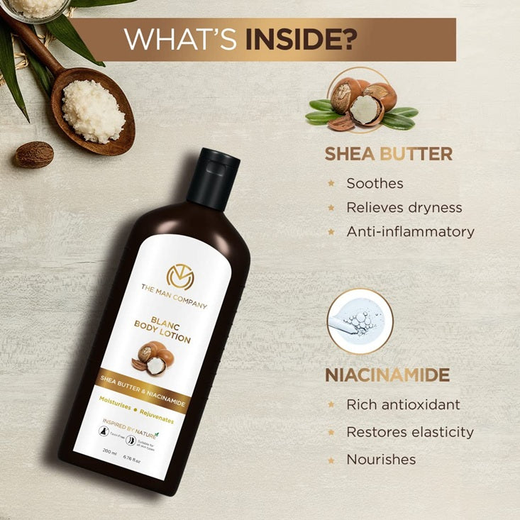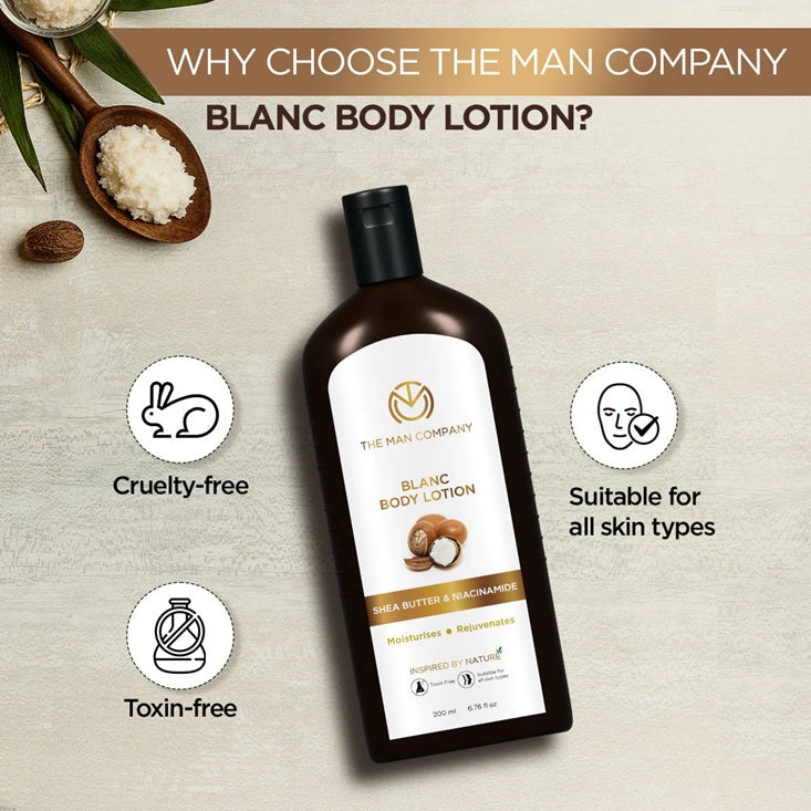 NON-GREASY: The Man Company Blanc Body Lotion is a non-greasy lotion suitable for a quick & effective moisturization especially for normal to oily skin.
