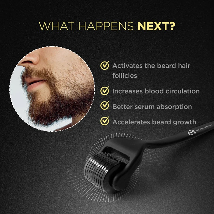 The Derma Roller is an effective tool that helps in boosting hair growth by creating micro-punctures that result in increased blood flow and collagen production in your scalp and beard region.