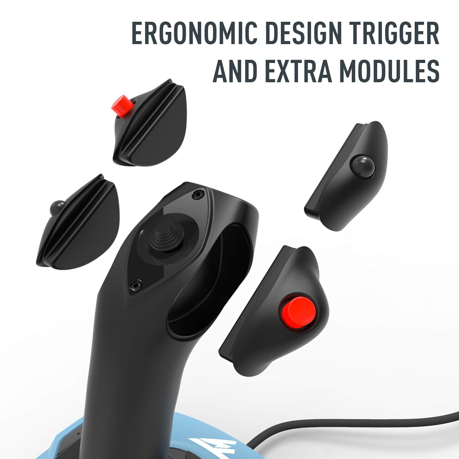 Joystick featuring 4 swappable head button modules, 12 remappable buttons, built-in throttle, plus rudder control
