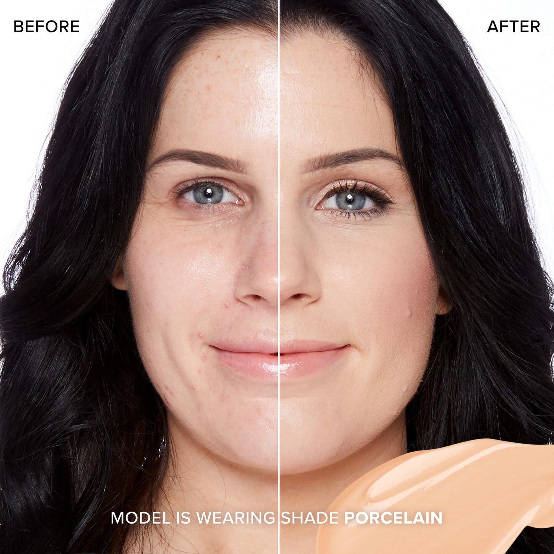 - Start at the center of the face and work outward. Apply more to achieve desired coverage.