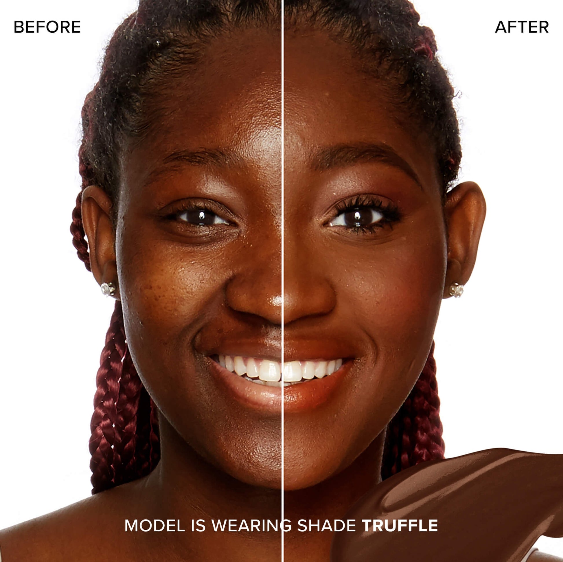 • Start at the center of the face and work outward. Apply more to achieve desired coverage.