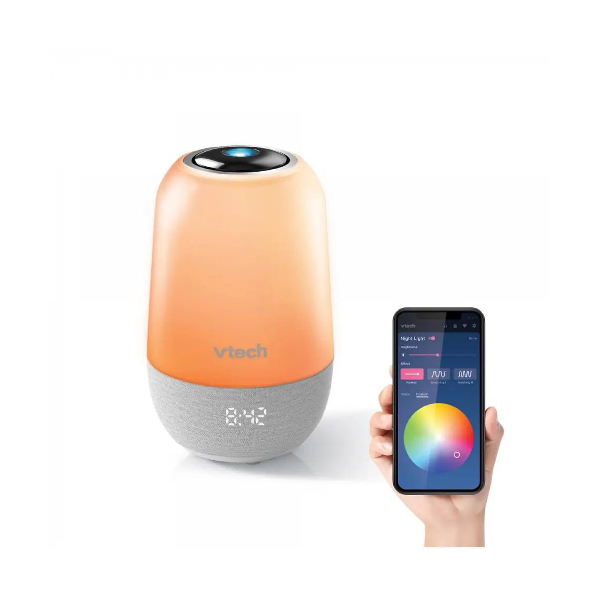 Create ideal sleep patterns & environments with the VTech BC8313 Sleep Training Soother. Inspired by WeeSleep experts, the Hush Pro provides features that enable better, longer sleep for the whole family. Combines light, sounds, and tips to encourage healthy sleep habits using the colorful night light, glow-on-the-ceiling projector, and powerful Bluetooth Speaker. Craft sleep-inducing atmospheres with over 200 pre-programmed stories, classical music, lullabies and natural sounds, or stream from your favorite smartphone music service. , , Record and upload your own voice, songs, or stories using the subscription free app. Plus, ensure your family sleeps well even if you're on the go thanks to the rechargeable battery. , ,