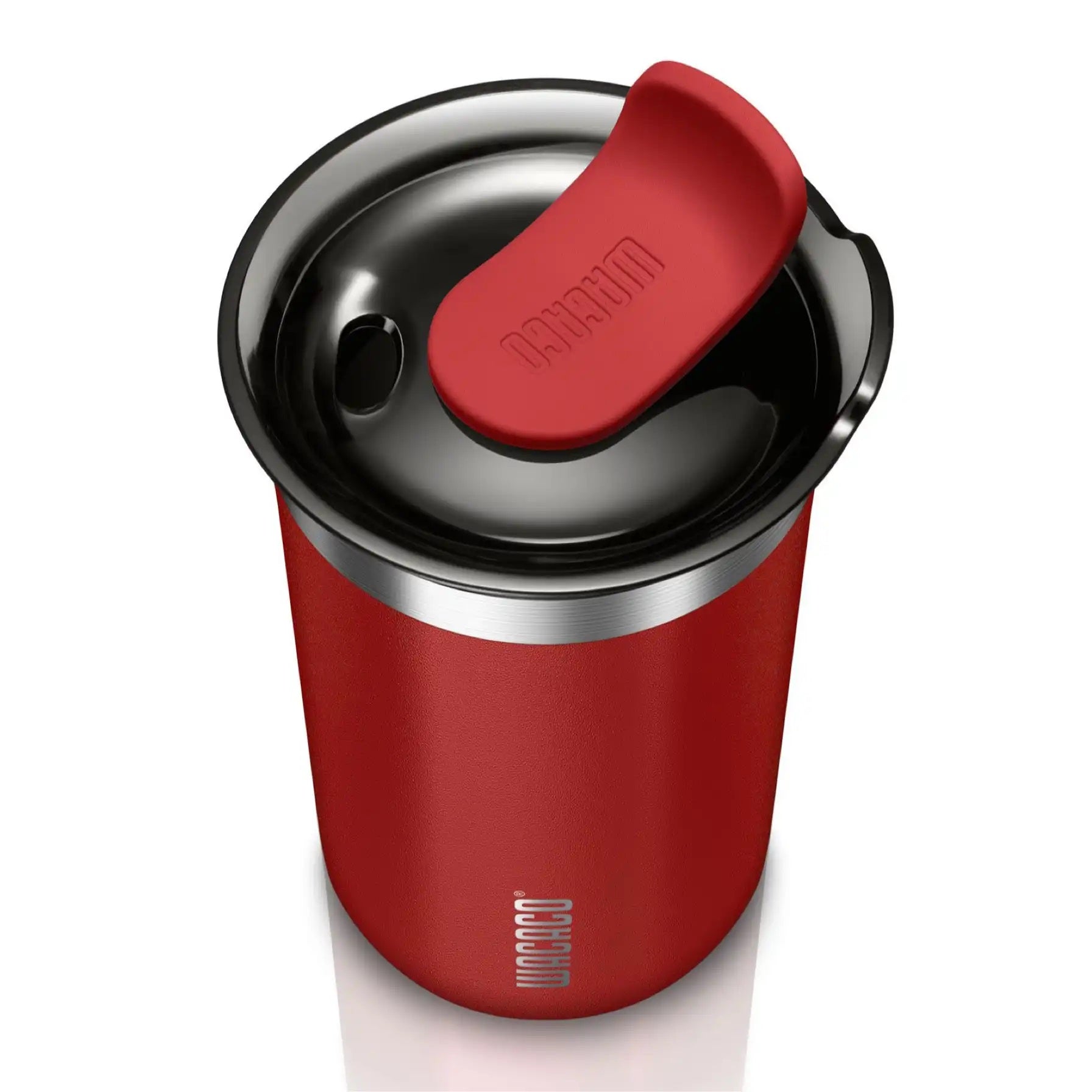 The Wacaco Octaroma Lungo Vacuum-Insulated Coffee Mug, WC-OCTAROMA-RED is a stylish mug that keeps your favorite beverages hot for up to 6 hours or cold for up to 12 hours