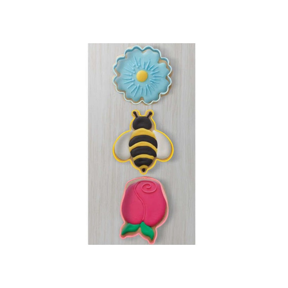 Wilton Daisy, Bumblebee and Tulip Spring Cookie Cutters let you make cute and trendy spring-shaped cookies for garden-themed parties or baby showers.