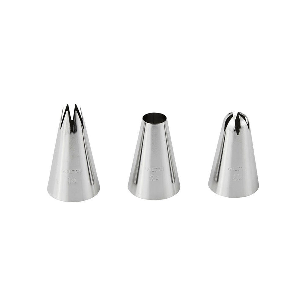Whether you're a novice decorator or a seasoned pro, this tip set from Wilton lets you create eye-catching cake and cupcake decorations. It features three extra-large piping tips, ideal for crafting oversized swirls, elegant drop flowers, charming dots, brilliant stars, and much more.