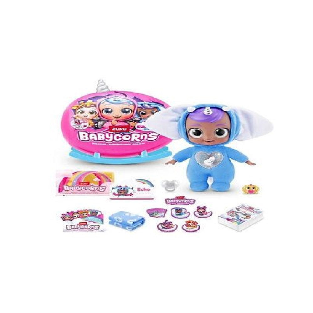 Pack Inclusion: 1x Magic Crib, 1x Small Babycorn Doll, 1x Storybook, 1x Boo-boocorn, 1x Pacifier, 1x Blanket, 1x Library Card, 1x Slime, 6x Sticker, 1x Collectors Guide, 1x Peel to Reveal Heart