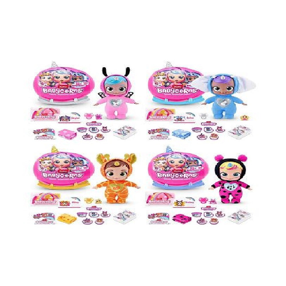 Step into a world of Cutness with the all-new Babycorns series! Welcome these adorable Rainbcorn babies with wide arms. Each Surprise brings over fifteen hidden wonders from cosy blankets, pacifiers to a heartwarming book. Enrich their world with care and love as you discover the secrets beneath their special hearts. For devoted little parents comes a pouch with mini dolls, endless stickers and a collector's guide! Join the journey to nurture and grow together!